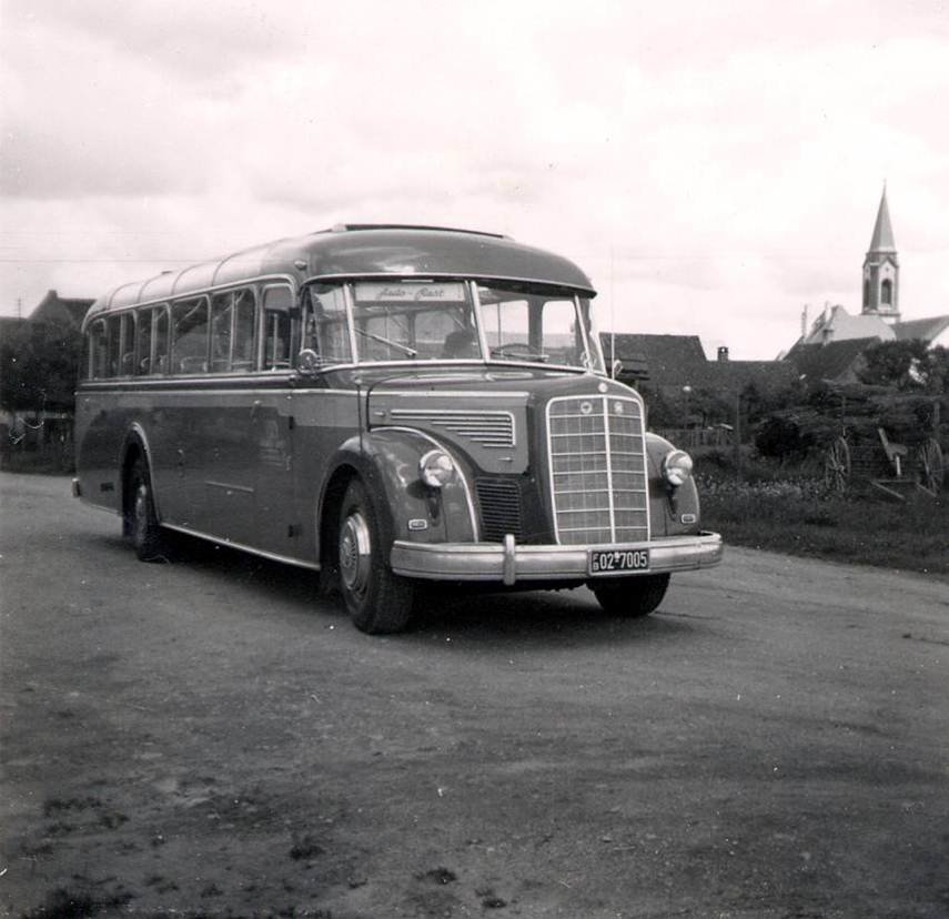 Im Jahr 1939 wird Alfred Rast in den Krieg eingezogen. Erst am 26. Mai 1948 kehrt er aus französischer Kriegsgefangenschaft zurück – und kauft nur sieben Monate später, im Dezember 1948, einen ehemaligen Nachrichtenden des Militärs. Der Krieg mag das junge Unternehmen zerrüttet haben, aber davon lässt Alfred Rast sich nicht entmutigen: Am 3. Januar 1949 eröffnet er den Linienverkehr zwischen Bremgarten und Freiburg wieder und gibt damit den Bewohnern des Schwarzwaldes ihre Reisemöglichkeit zurück. Wer diese nutzen und mitfahren wollte, musste damals ein rotes Fähnchen an der Haltestellen in die Höhe halten: zum Beispiel an der Stube in Bremgarten, dem Hirschen, der Kirche in Hartheim, dem Kreuz in Feldkirch oder dem Löwen in Schallstadt und Wolfenweiler.